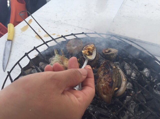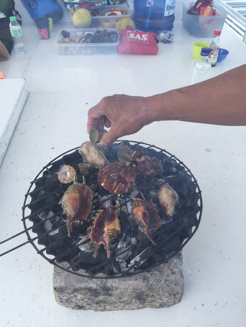 トコブシ以外にもウミギクガイやクモガイも焼く!
