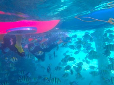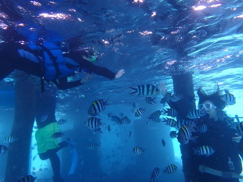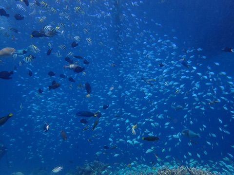 太陽の光がないので、水中は少し暗いですが、