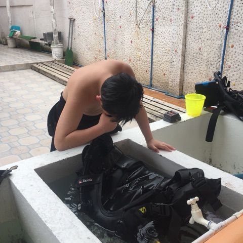ダイビングに出かけたとたん雨が降り、