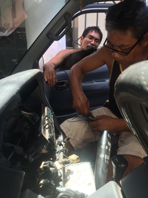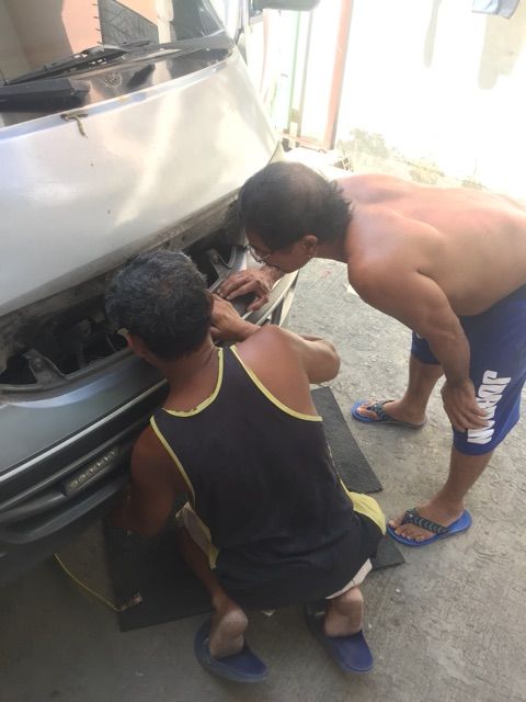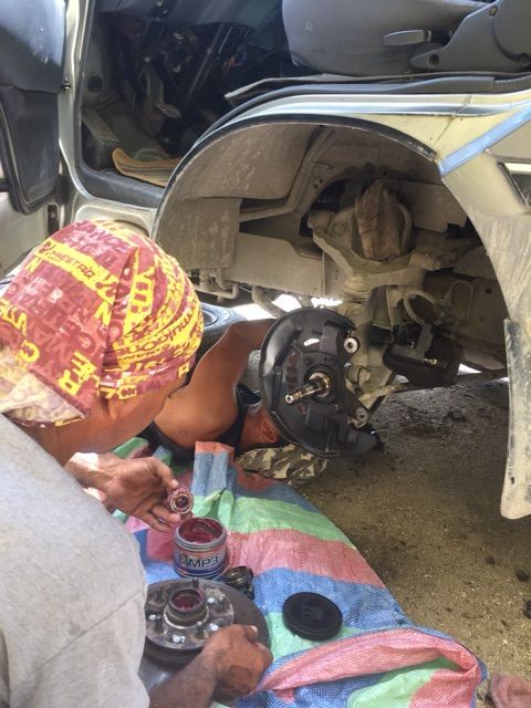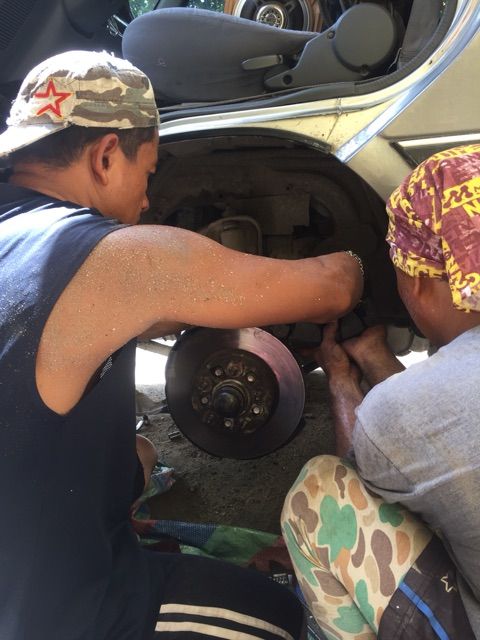 昨日はエアコンが見事に直ったのですが、タイヤの辺りからちょこっと変な音がするので、点検開始!
