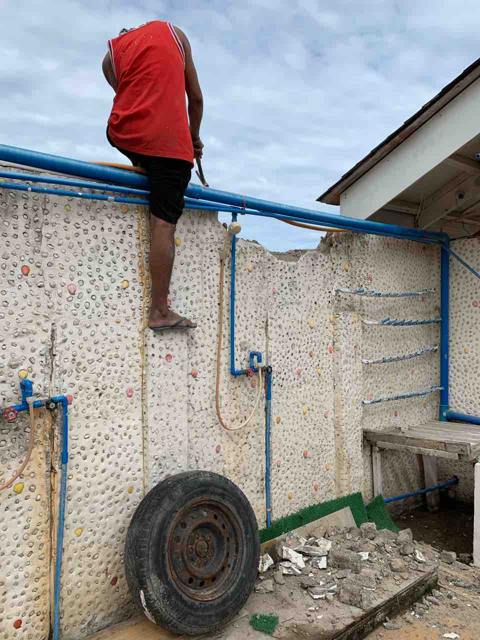 急いでパーツを持って帰る途中。