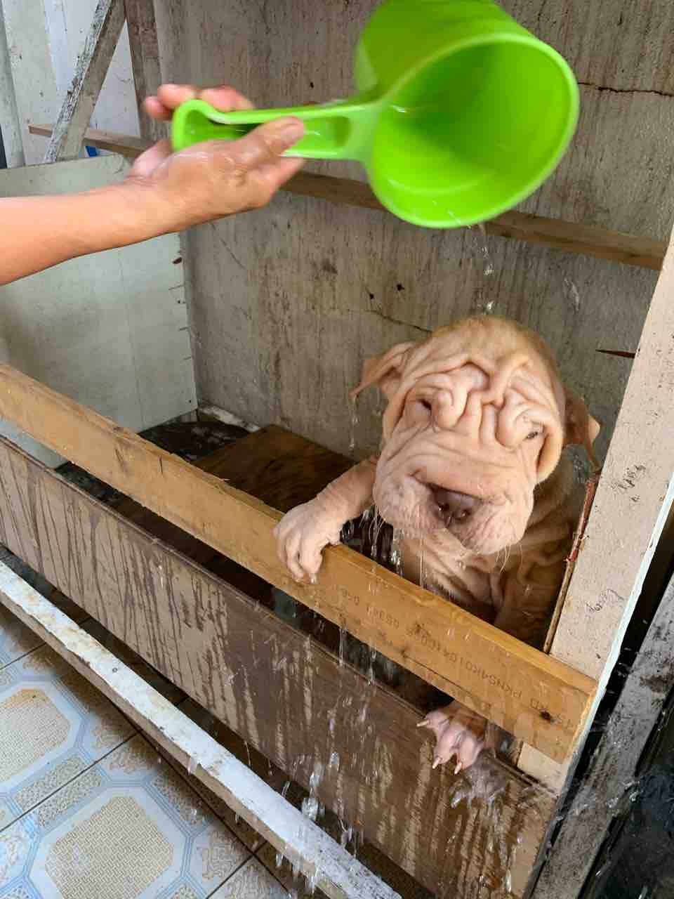 ブッチャー君は朝からシャンプータイム。