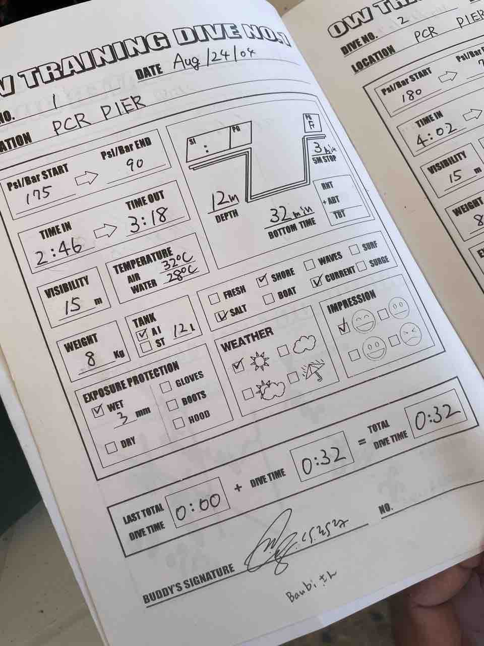 真偽を確かめる為に、ライセンスを取った時のログブック2004年。