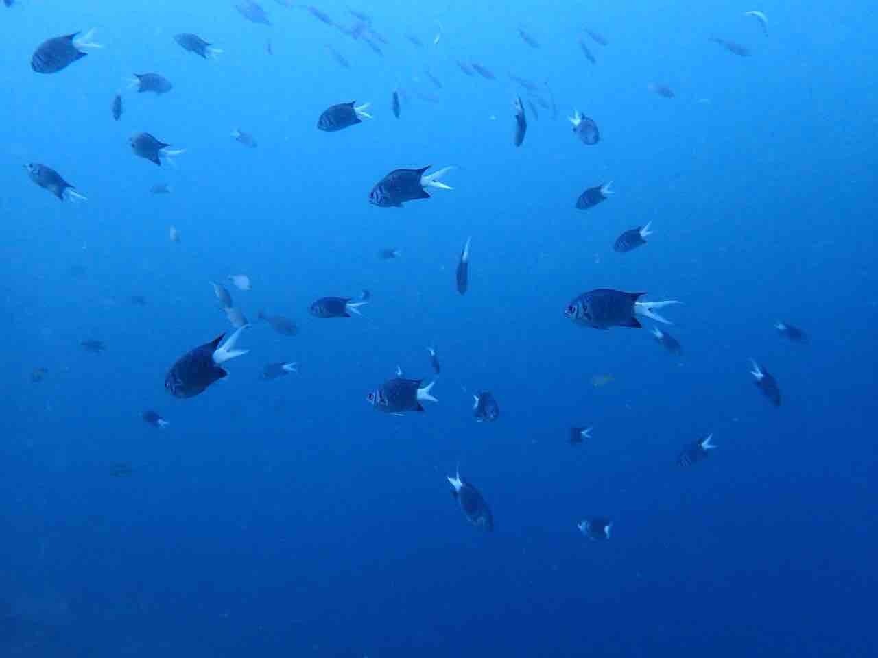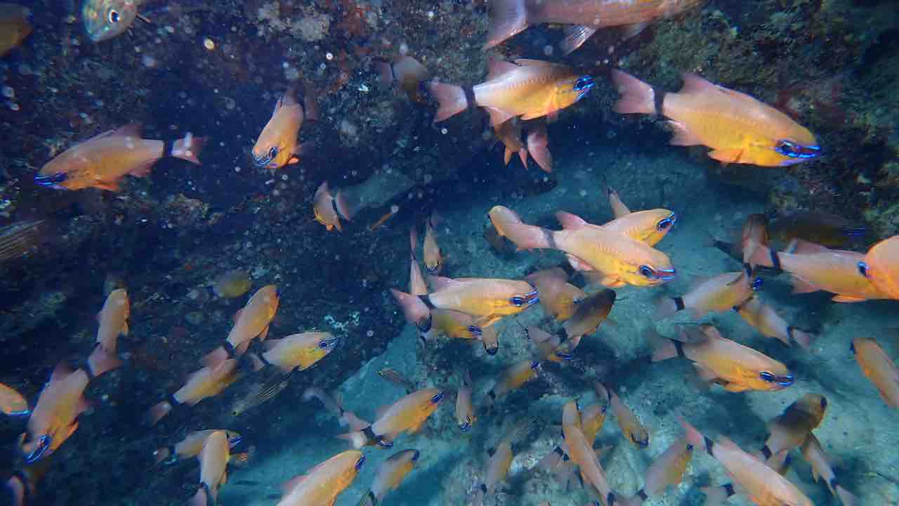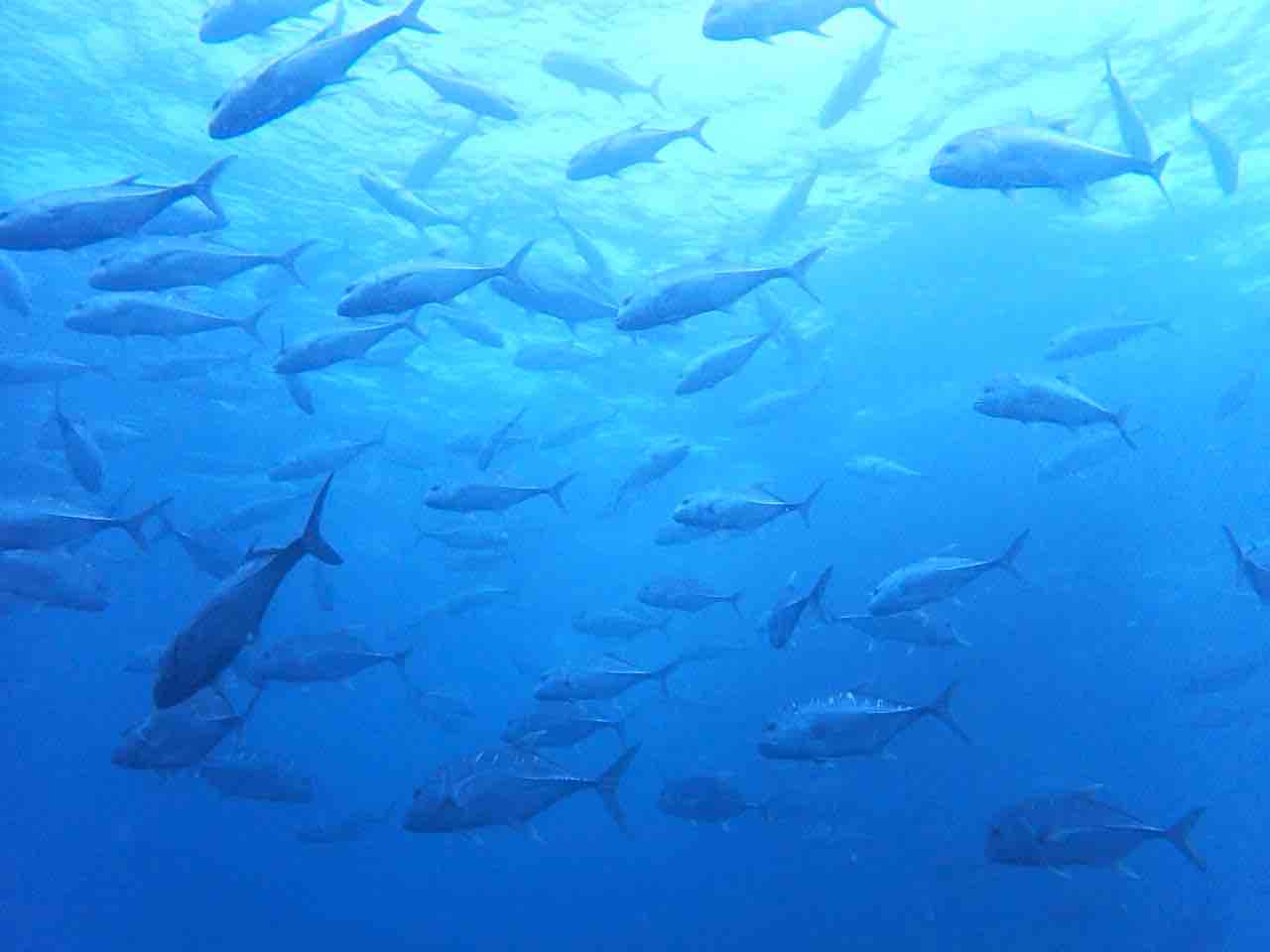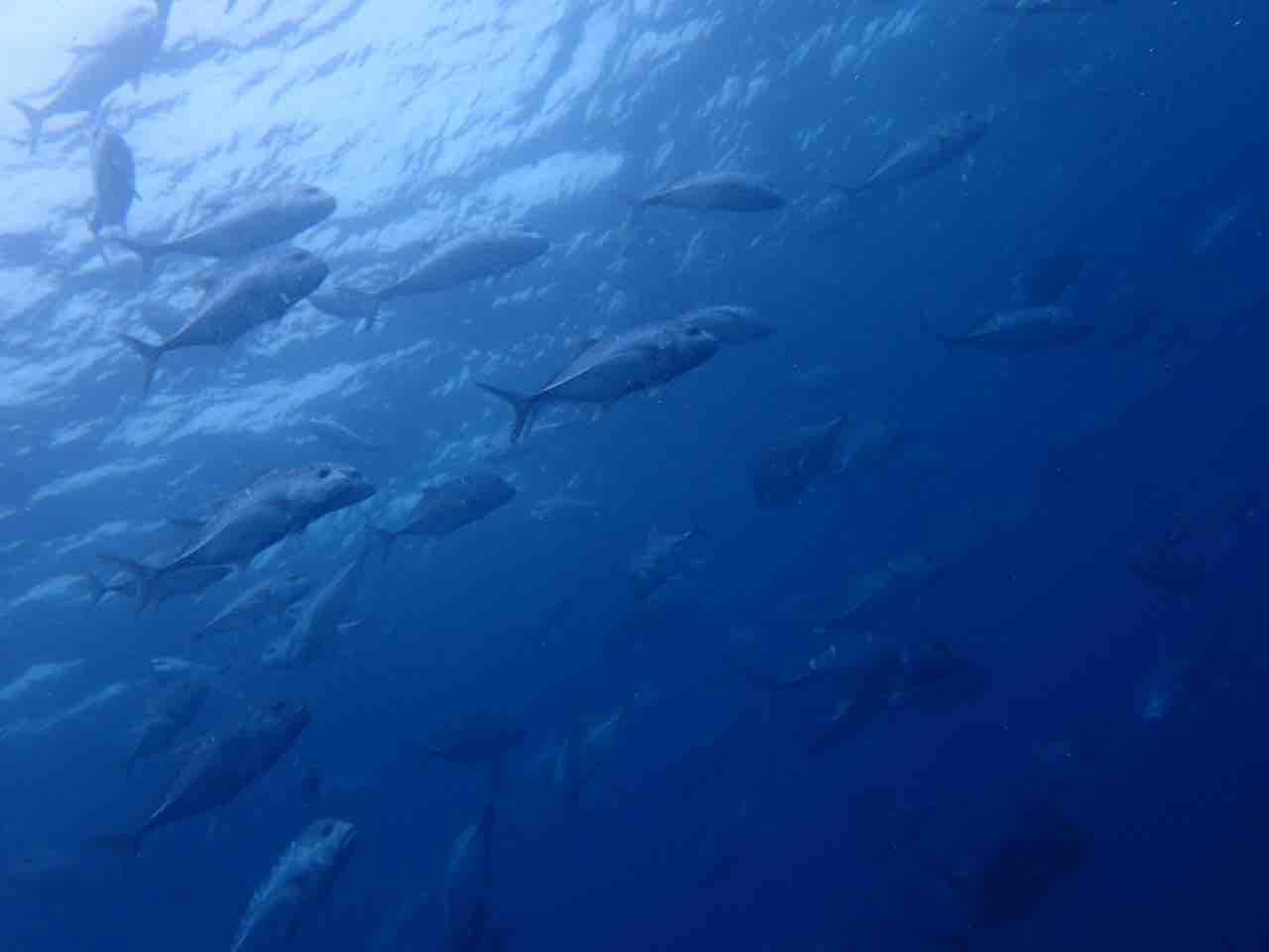 アオスジテンジクダイも群れ群れ。