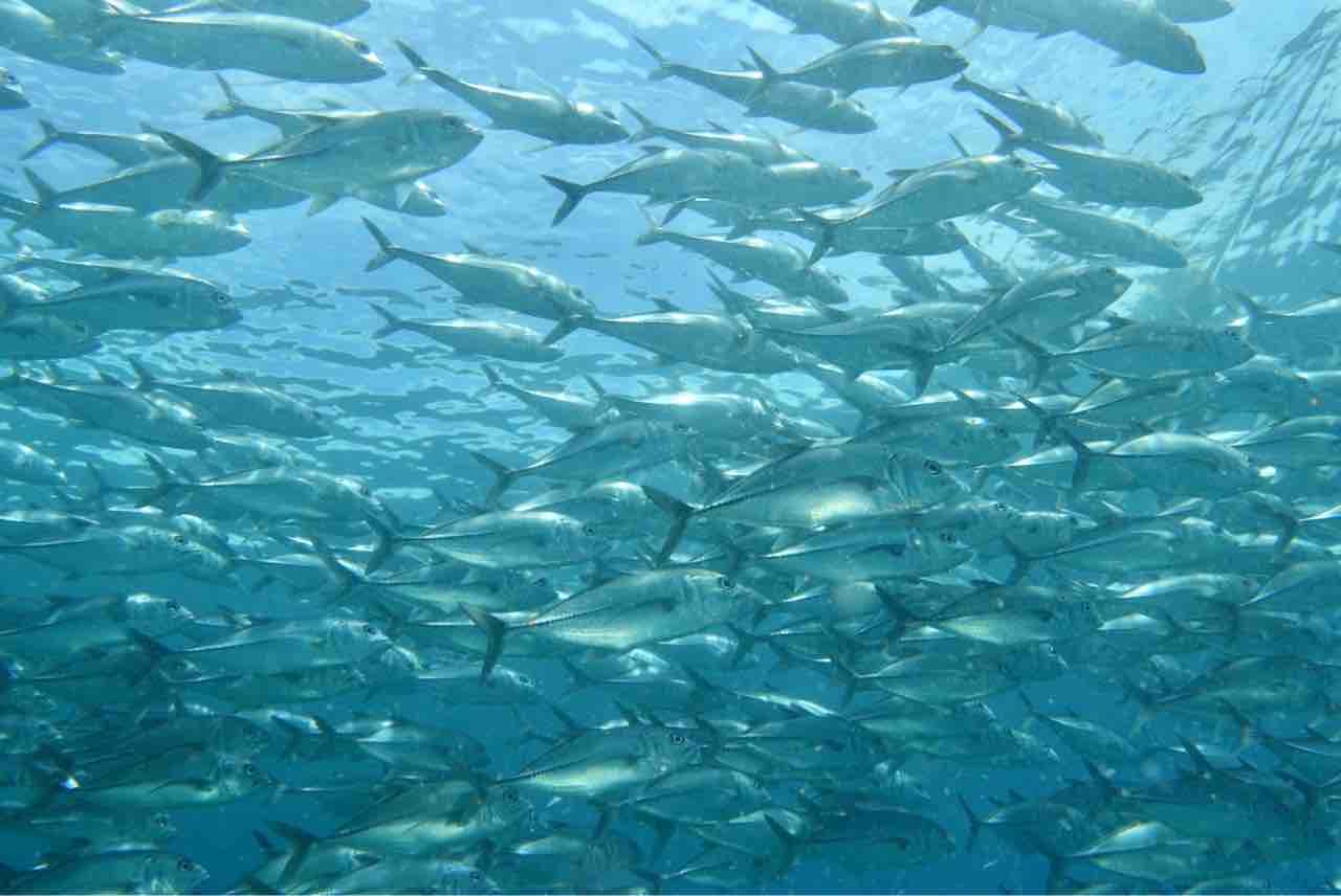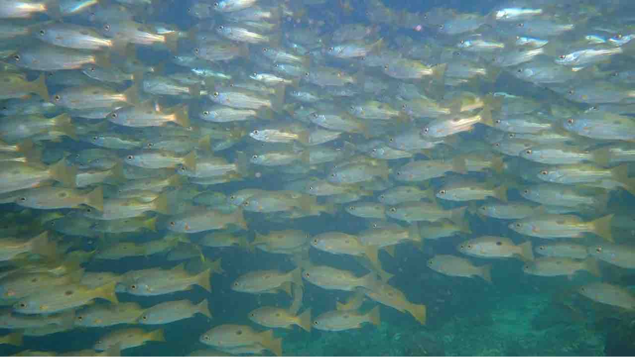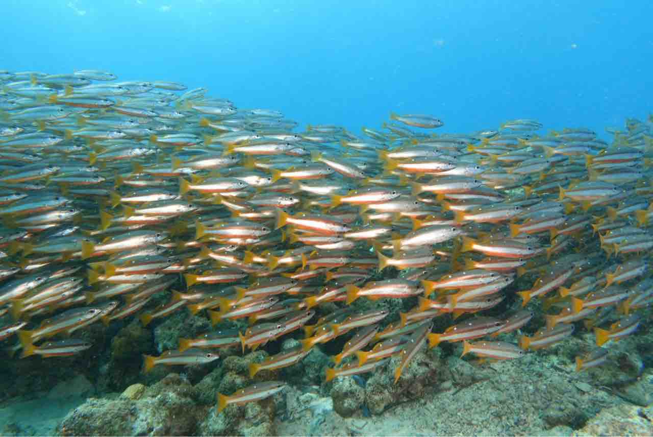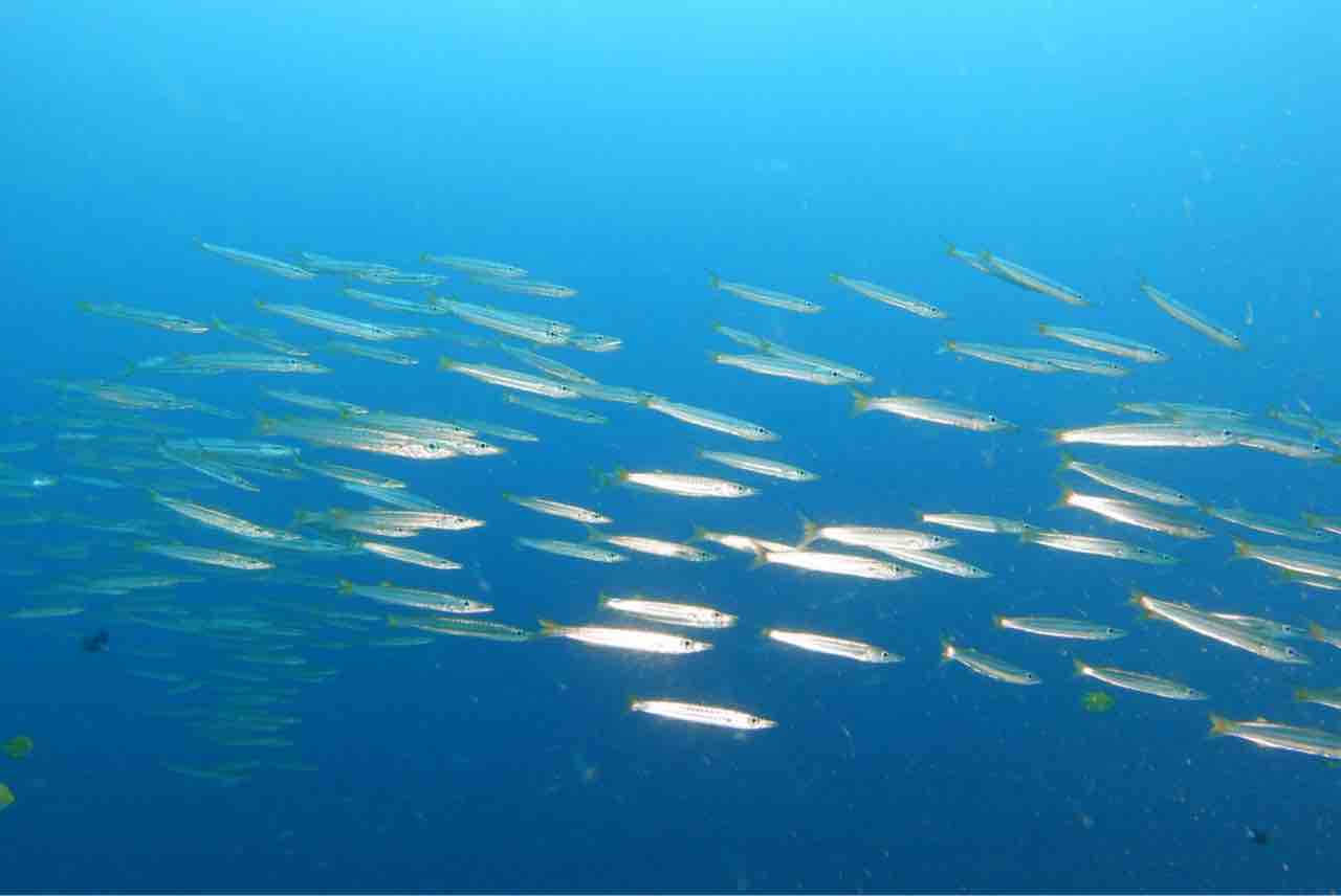 アオスジテンジクダイも群れ群れ。
