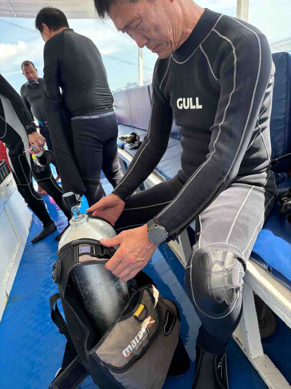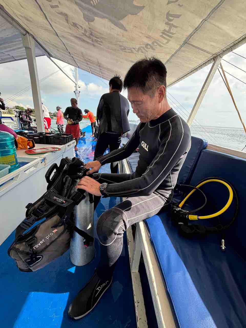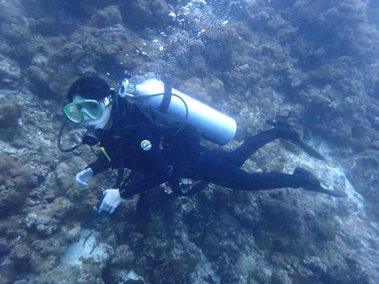 チーム関西のRちゃん。10年ほど前に沖縄で体験ダイビングをやったらしいのですが、怖かった記憶が。。。と。