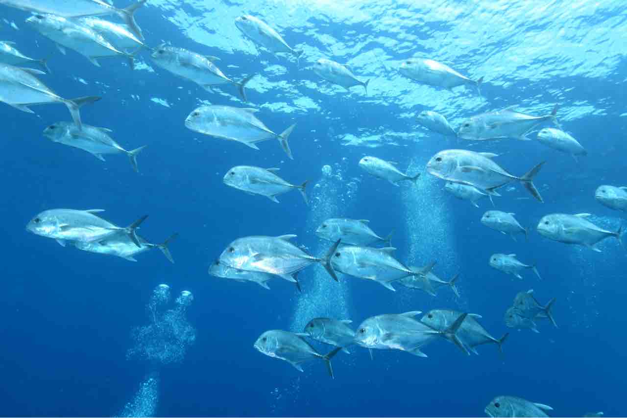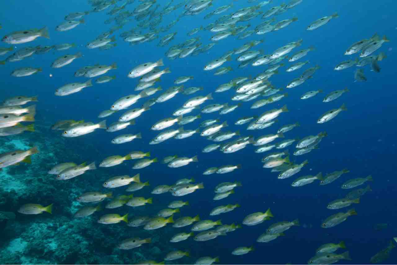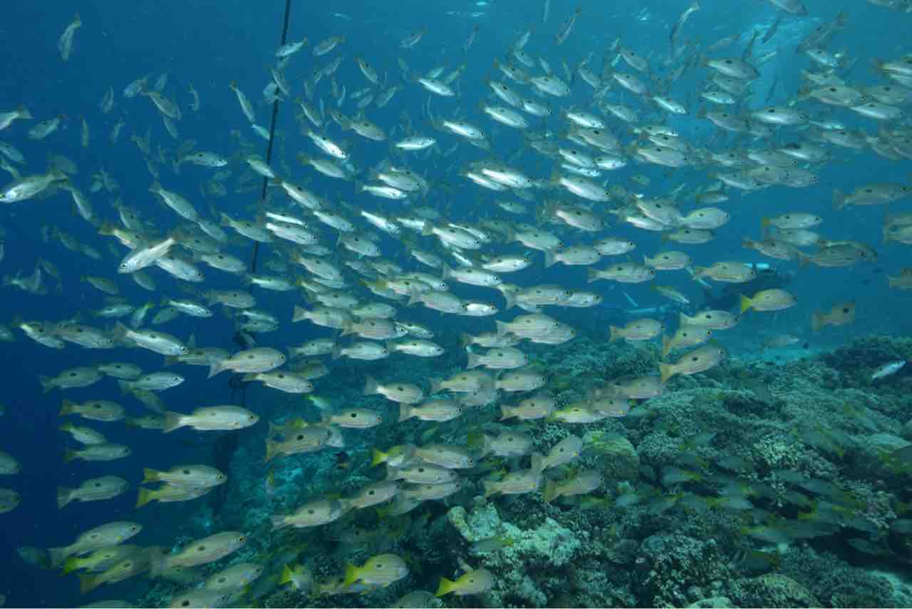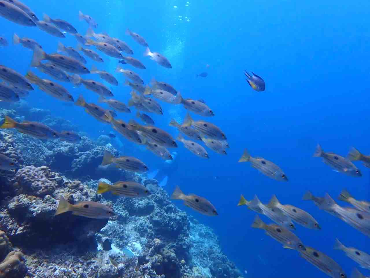 ニセクロホシフエダイが塊になってます。