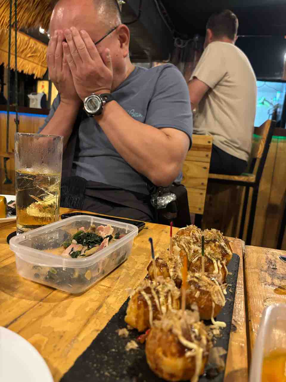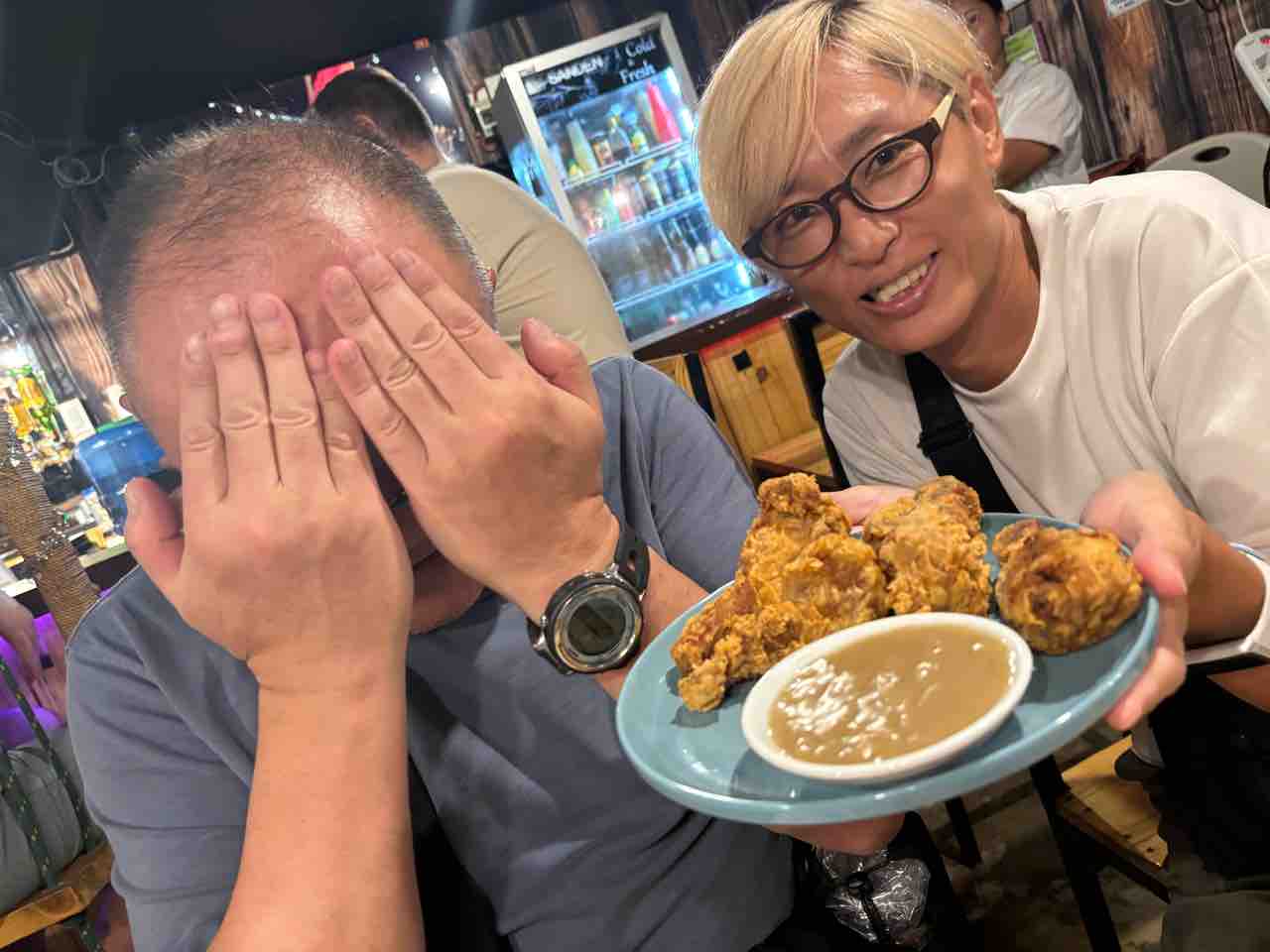 初めましてのヨシさん、なんなのこの人達って思いながらカラマンシージュース飲まれていました。
