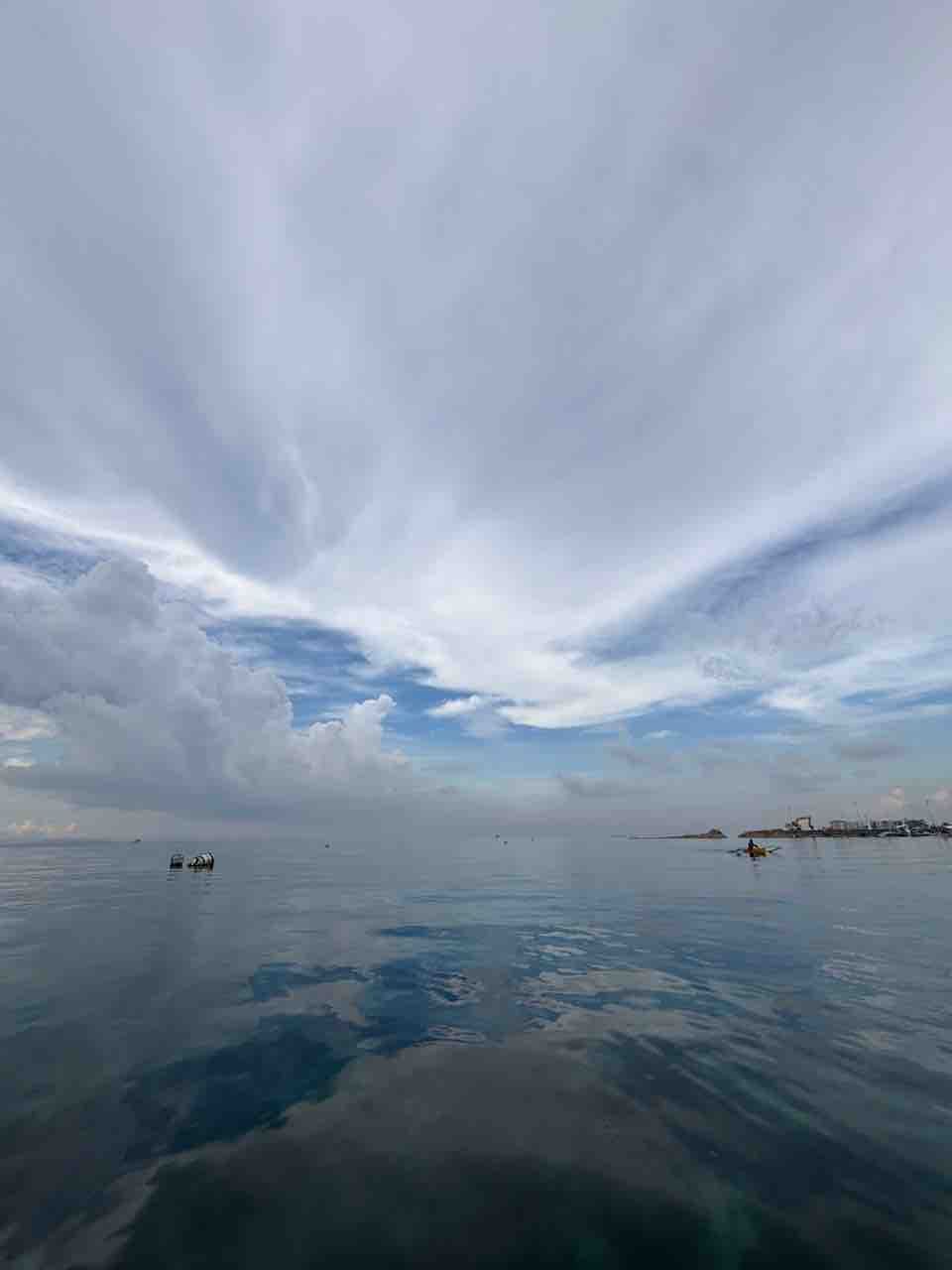 ちょっと雲が多いですが、海は鏡のよう。