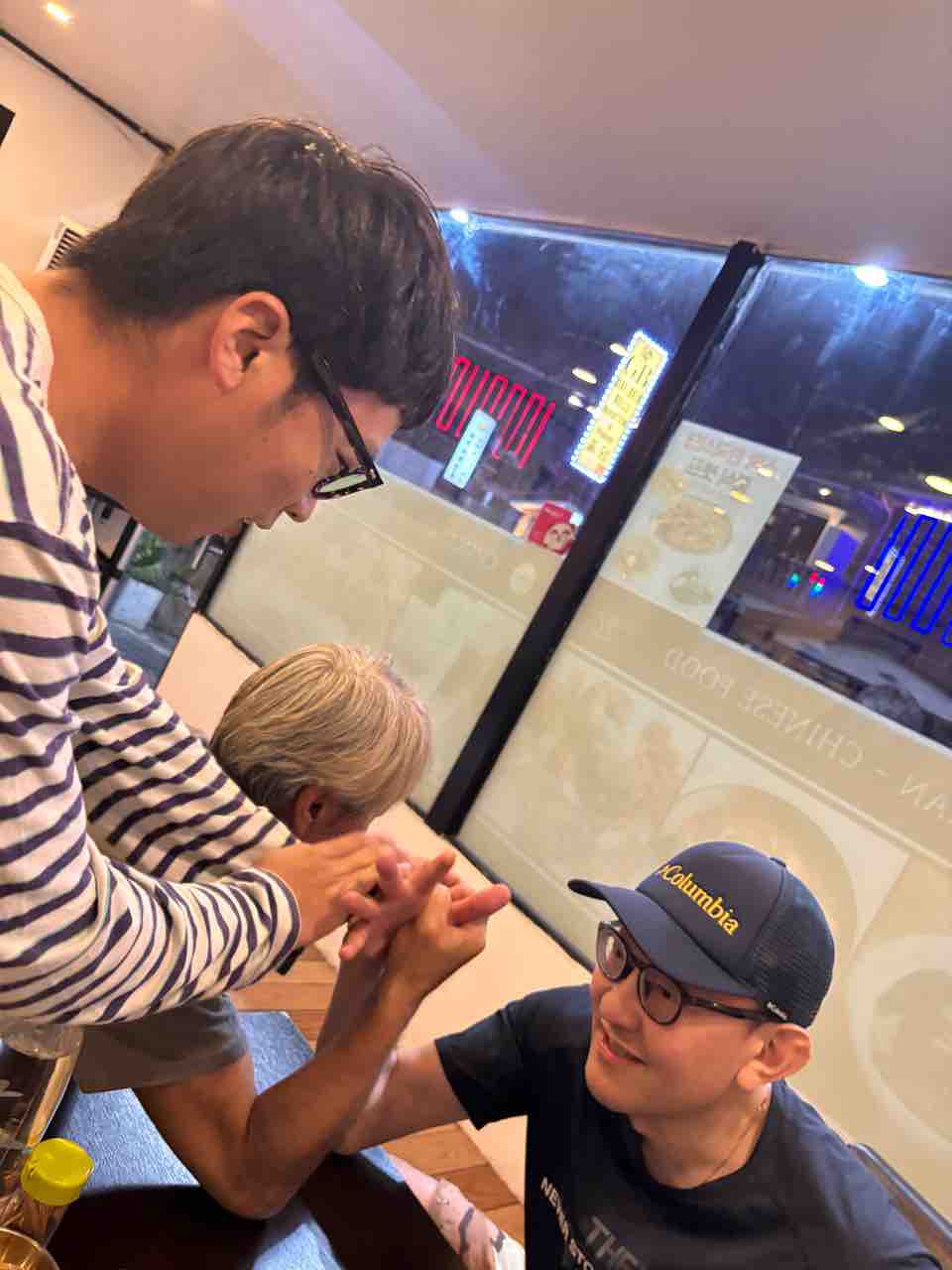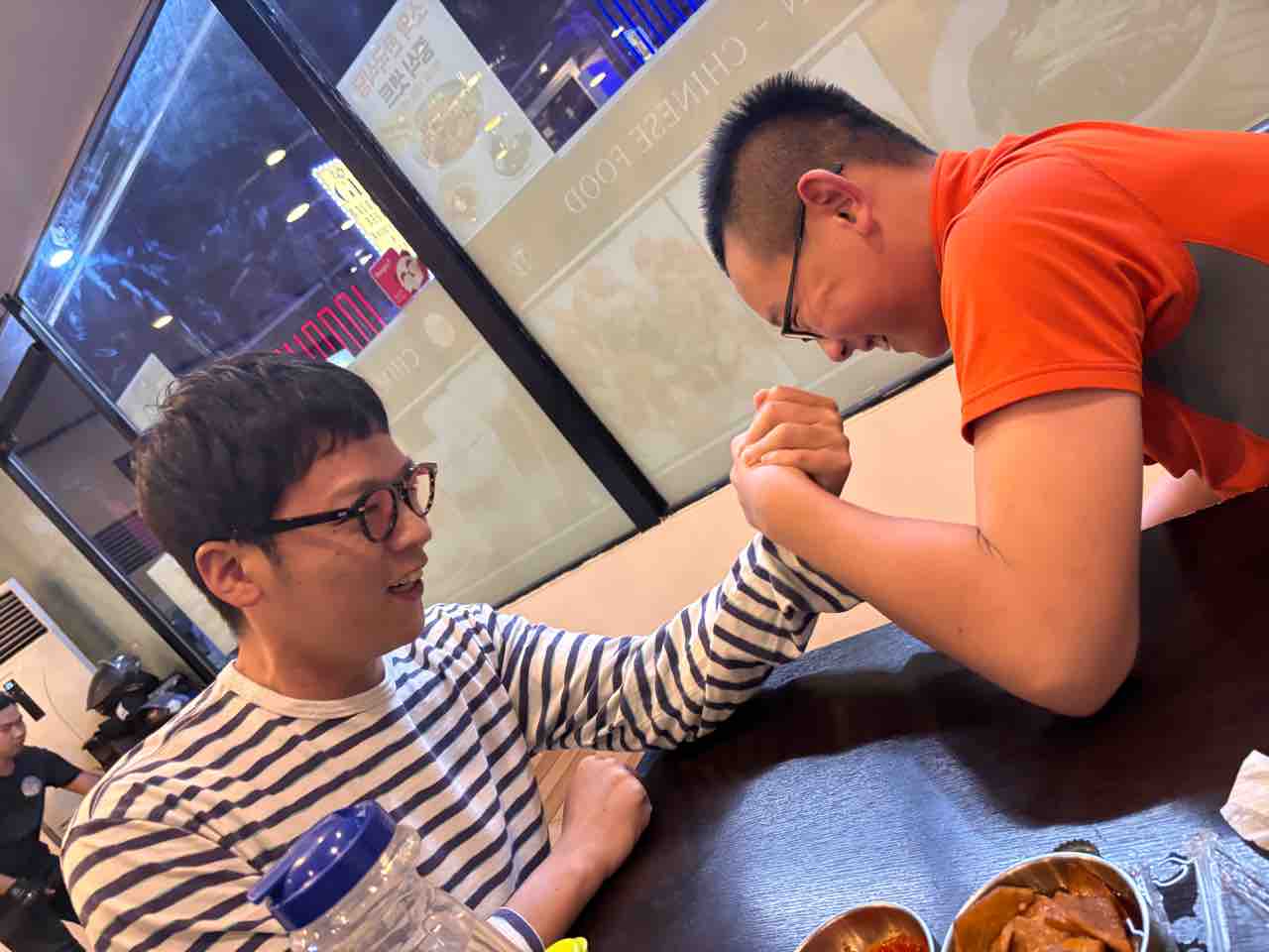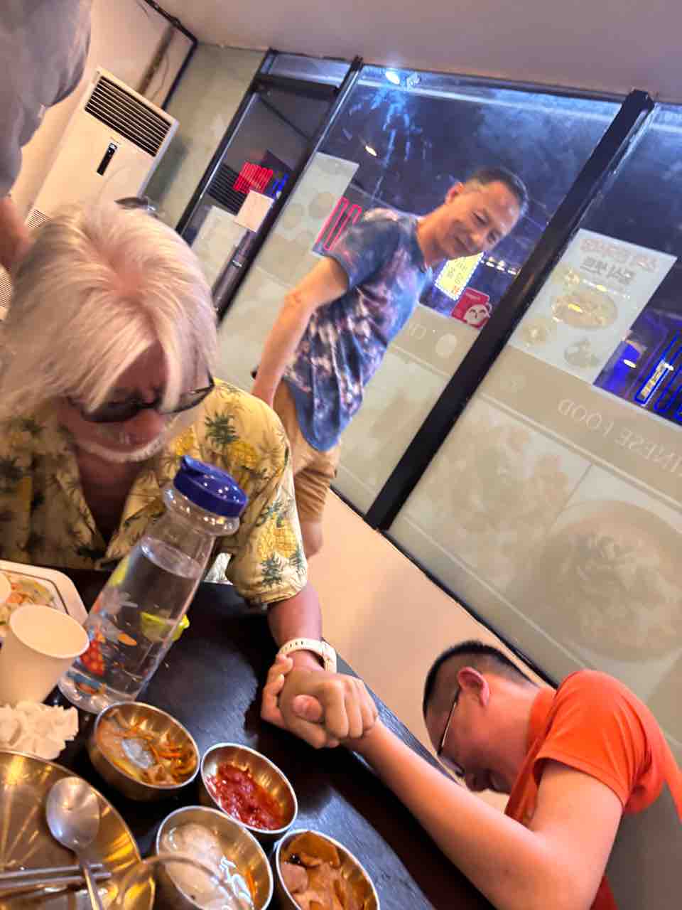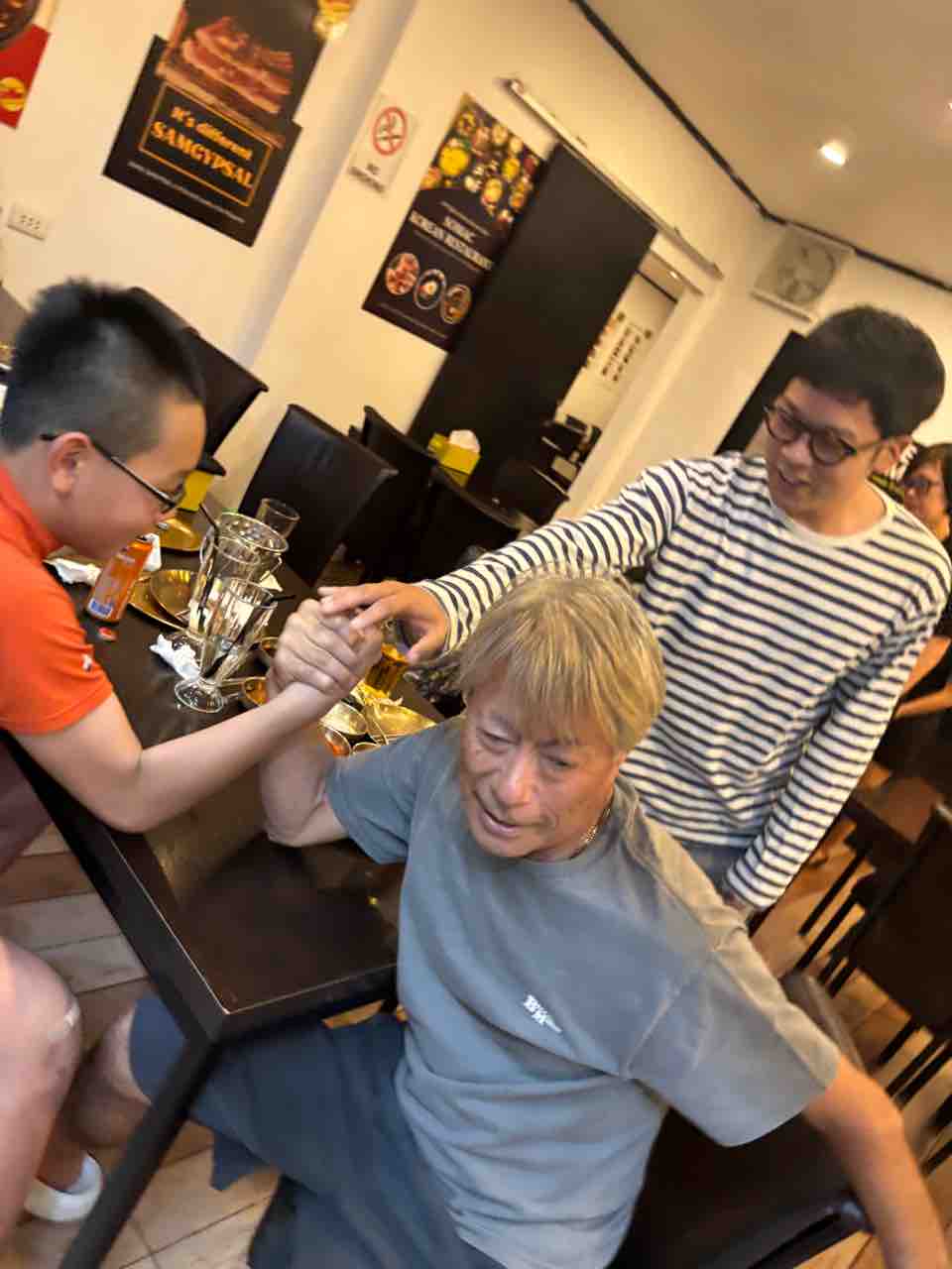 なぜか始まる男たちの腕相撲大会。