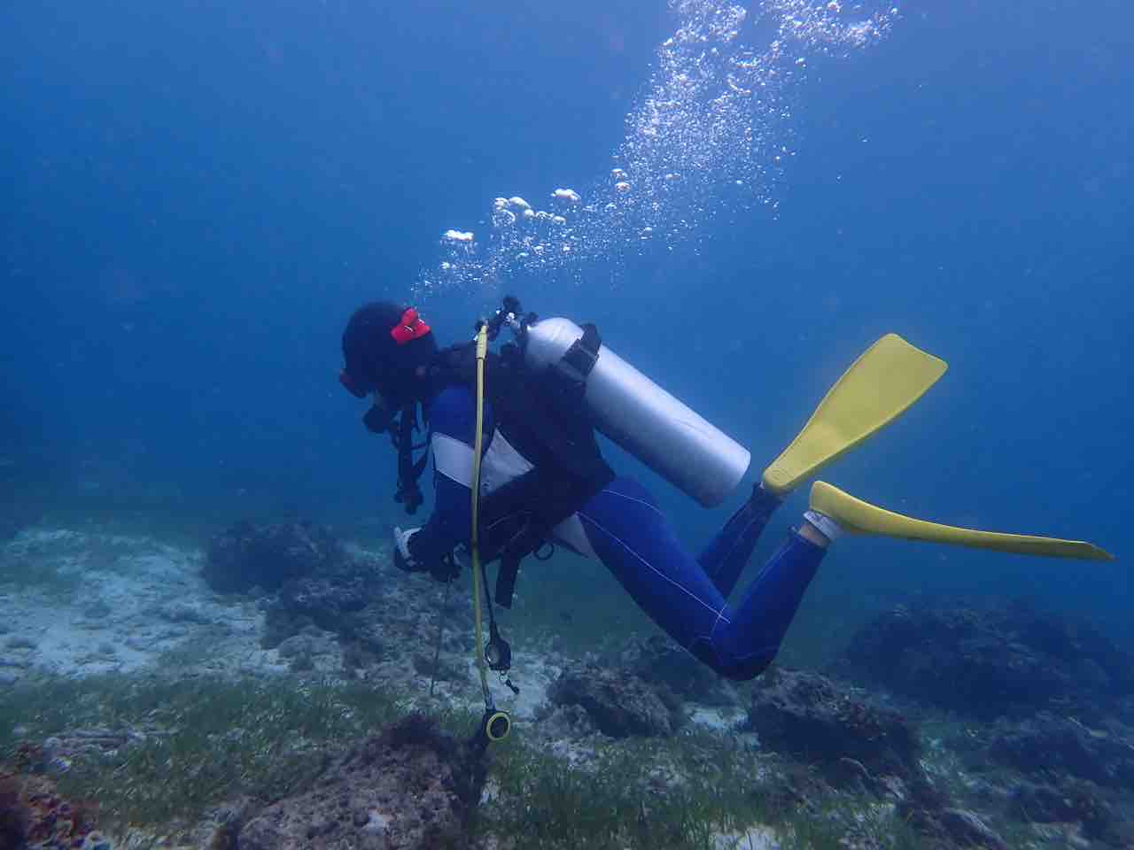 流れ少し、水温28.4℃、透明度18メートル。