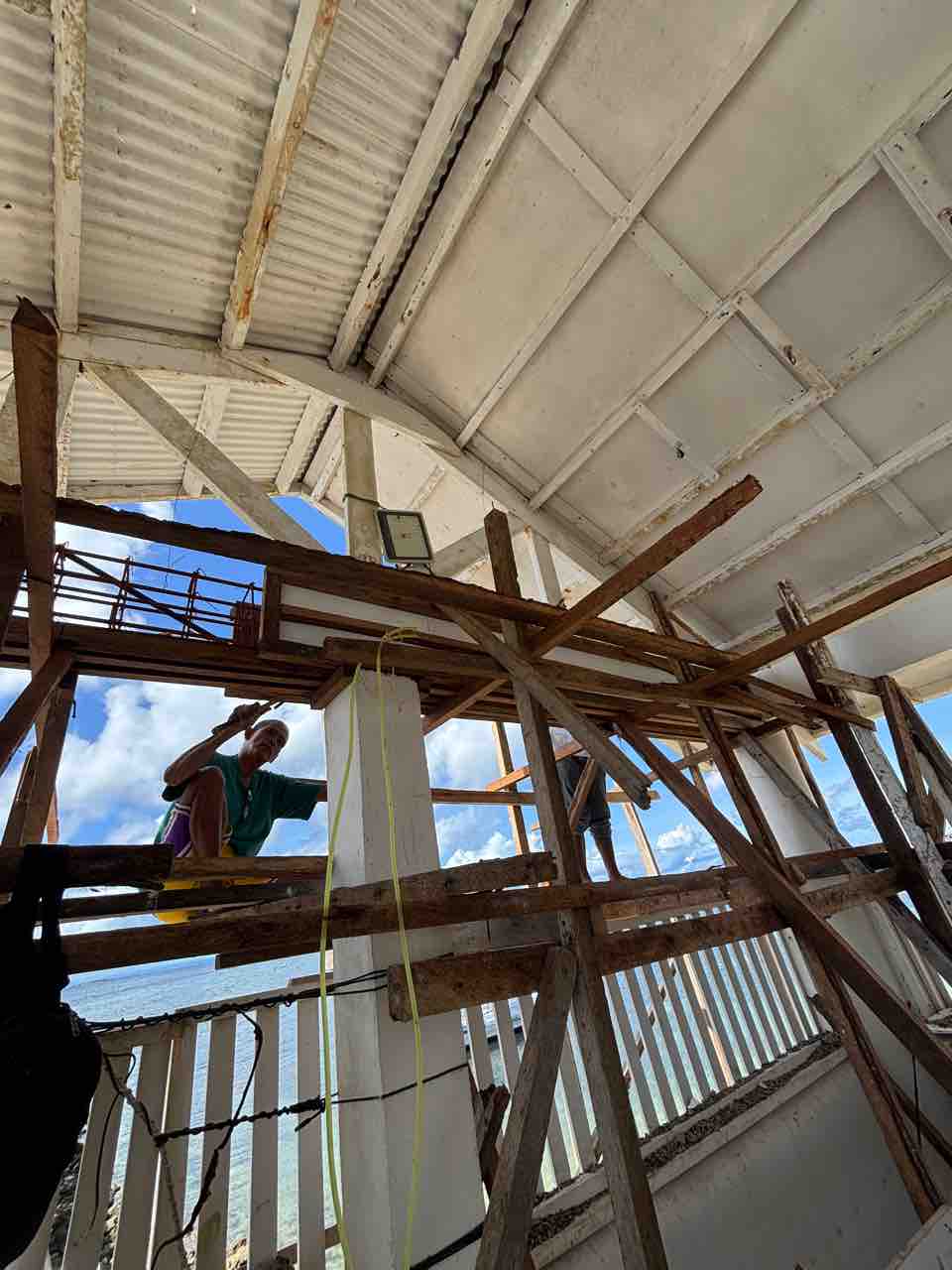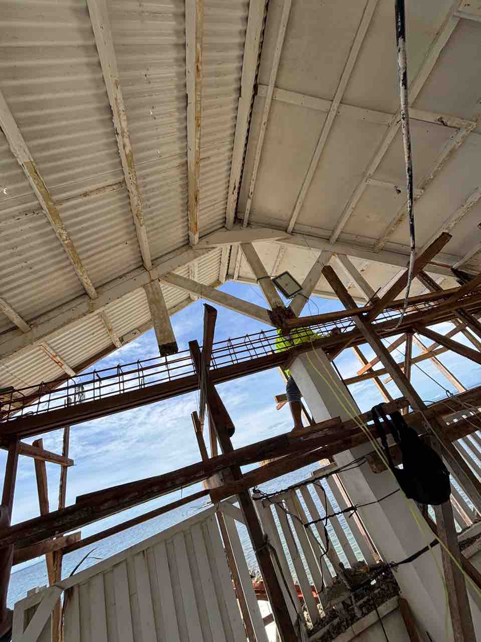 テラス部分の梁修復作業。